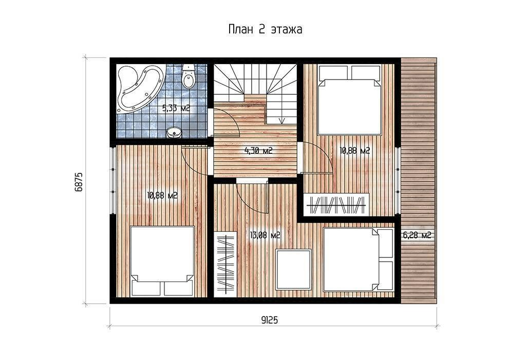 House dimensions: 6.88 x 8.13 m